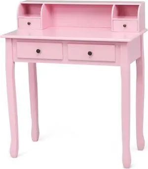 Costway Writing Desk Makeup Vanity Table Home Office Computer Desk 4 Drawer Pink