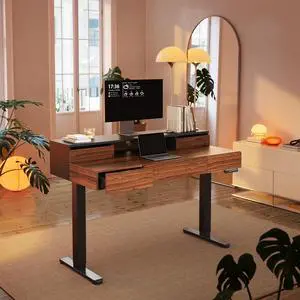 HUANUO 55" Standing Desk with Drawers, Executive Electric Height Adjustable Stand Up Desk with Storage, Computer Workstation for Home Office, Black Walnut