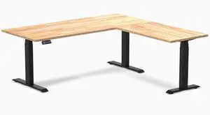 Desky Rubberwood L-Shape Sit Stand Desk - Natural Timber / 72 x 30 x 70 x 24 in / Matte Black