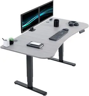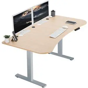 VIVO Electric 63 x 32 Stand Up Desk, Light Wood Table Top, Gray Frame