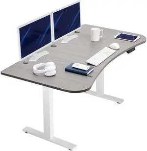 VIVO Electric 63 x 32 Standup Desk, Dark Gray Table Top, White Frame