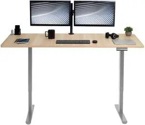 VIVO Electric Dual Motor 71 x 30 Standing Desk, Light Wood Top, Gray Frame