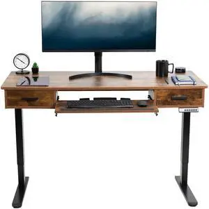 VIVO Electric 55 x 24 Desk with Rear-set Legs, Vintage Brown Top, Black Frame