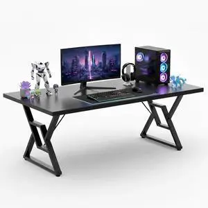 OHOHOLIVE Thick Desktop Executive Computer Desk, Home Office Workstation with Sturdy Z-Shaped Metal Legs