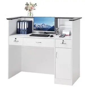 Vevor Reception Desk, 50 inch Rectangular Front Counter Table, Modern Office Reception Desk with Light Strip, 3 Drawers & Storage Cabinets, Retail Counter Table for Checkout, Lobby, Salon, Office