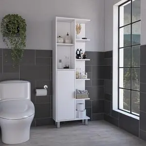 Crovie Linen 63-inch High Bathroom Cabinet Linen Storage Cabinet with Seven Open Shelves