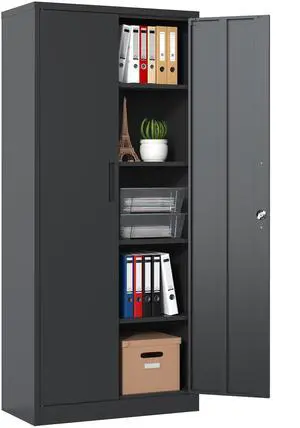 72"H Metal Garage Storage Cabinet, Black Tool Steel Locking Cabinet with Doors and 4 Shelves, Tall Cabinets for Garage Storage Systems Lockable File Cabinet for Home Office, Classroom/Pantry