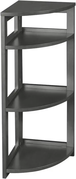 Romig Flip Flop 34 in Folding 3-Shelf Corner Bookcase, Sturdy Solid Wood, Grey
