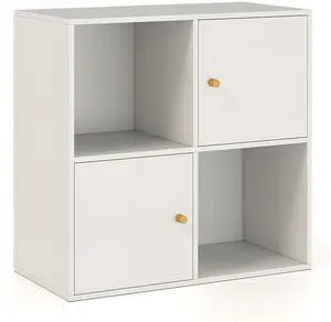 SlickBlue 4-Cube Bookcase 3-Tier Bookshelf with Dual Anti-Tipping Kits and 2 Cabinets