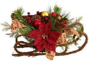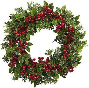 Nearly Natural 4555 24â Berry Boxwood Wreath,18.5 x 6 x 18.5 , Red