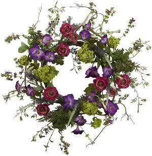 Nearly Natural 20" Cedar Antlers Lily and Ruscus with Berries Wreath