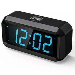 SUPLEDCK Alarm Clock,Digital Alarm Clock for Bedrooms,Battery Operated Clock,Adjustable 3 Brightness,1.2 inch LED Time Display, 12/24Hr, Cordless,Snooze (Black-Blue led)
