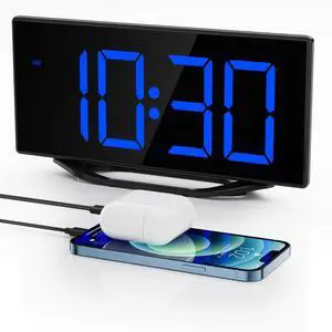 Alarm Clock for Bedroom with Night Light & Bold Digits-7 in Digital Clock with Dual Alarms & USB Charger Ports,Battery Backup,Adjustable Brightness&Volume,DST, Loud Desk Clock for Heavy Sleeper
