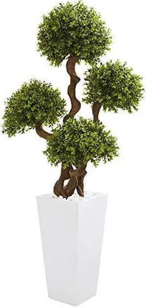 55 Four Ball Boxwood Artificial Topiary Tree in Tall White Planter