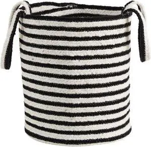 Nearly Natural 13" Boho Chic Basket Natural Cotton, Handwoven Black and White Stripe with Handles