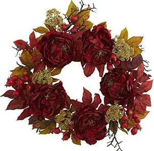 27 Magnolia Leaf, Berry, Antler and Peacock Feather Artificial Wreath