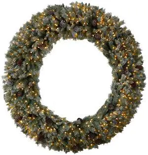 Nearly Natural 6' Giant Flocked Xmas Wreath w/600 Clear LEDs and 1000 Tips