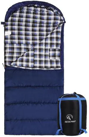 Cotton Flannel Sleeping Bag for Adults, XL 32F Comfortable, Envelope with Compression Sack Blue 2lbs(95"x35")