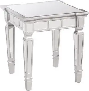SEI Furniture Glenview Glam Mirrored Square End Table, Matte Silver