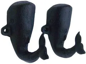 Dark Blue Whale Cast Iron Wall Hooks, Wall Mounted for Hanging Coats, Purses, Towels, Hats, Beach Themed Wall Décor, Set of 2, 4 Inches High