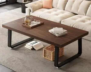 HSH Rustic Walnut Coffee Table, Modern Center Table, Rectangle Industrial Living Room Coffee Table, Simple Farmhouse Wood and Metal Tea Table for Home Bedroom Office, Walnut, 47 in