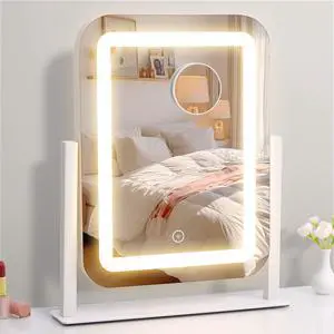 Shinerva Vanity Mirror with Lights,12"×14.6" LED Makeup Mirror,Lighted Makeup Mirror with Lights, Smart Touch Control Dimmable 3 Modes Light, Lighted Up Mirror for Makeup Desk, Bedroom, Dressing Room