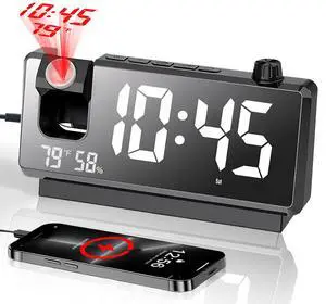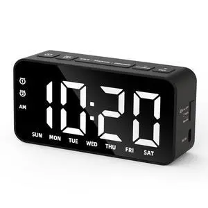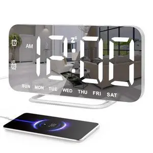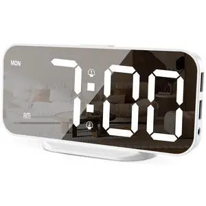 Slim LED Digital Alarm Clock, Mirror Surface for Makeup, with Diming, Large Display, Easy Setting, USB Ports, Modern Decor for Bedroom, Desk, Christmas, Birthday Gift for Women, Daughter, Girl, White- Type: Digital