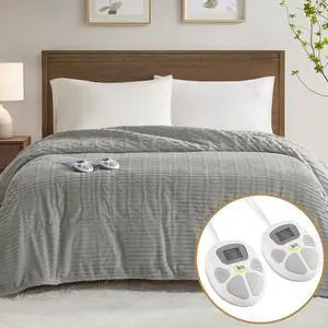 Serta Electric Blanket, Soft, Ribbed, Plush Heating Blanket King for Office, Couch, 1-12 hr Auto Shut Off Timer, 10 Lv Heating, ETL Certified, King 100"x90" Mineral Grey