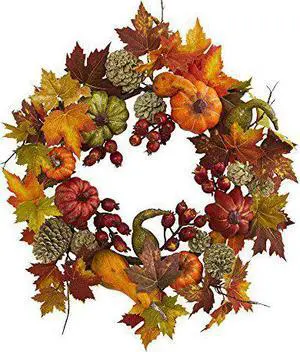 24" Pumpkin, Gourd, Berry and Maple Leaf Wreath