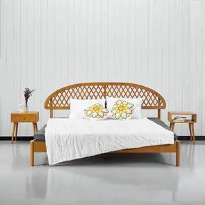 Modway Halcyon Cane Woven Rattan King Headboard in Walnut