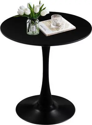 27.5" Small Round Dining Table, Modern Tulip Style Table for 1-2 People, Space-Saving Table for Dining Room, Kitchen, or Cafe, Black Pedestal Base