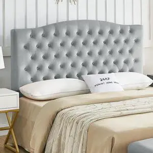 24KF Velvet Upholstered Tufted Button Queen Headboard and Comfortable Fashional Padded Queen/Full Size headboard- Gray