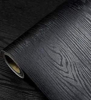 Black Wallpaper - Wood Peel and Stick Wallpaper Black Wood Self-Adhesive & Removable Wall paper for Countertop Furniture Kitchen Wall, Countertop Contact Paper, Easy to Clean, 11.8''×78.8'' Vinyl