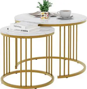 Garden 4 you Coffee Table Faux Marble Nesting Table for Small Place 2 Sets Modern Furniture Living Room Sets End Side Table Night Stand for Bed Room Dining Room (White & Gold)