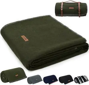 100% Wool Blanket, 62" x 86", Warm, Thick, Washable, Military Wool Blanket, Great for Camping, Outdoors, Sporting Events, Survival Kits