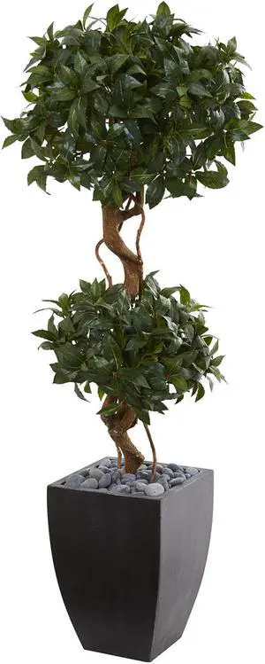 Decorative 4.5' Sweet Bay Artificial Double Topiary Tree in Black Wash Planter