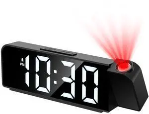 Projection Alarm Clock, Digital Alarm Clock for Bedroom with 180° Projector, Large Display Digital Clock, LED Clock with Adjustable Brightness & Volume, Snooze, DST, for Seniors Heavy Sleepers