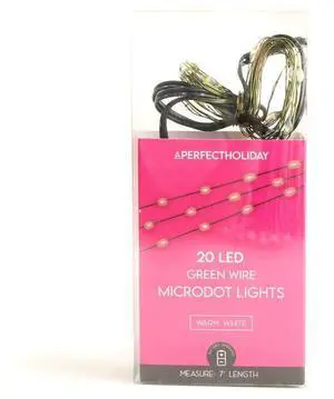 20 LED Multicolor Microdot String Lights 7ft Battery Powered Green Wire Warm White