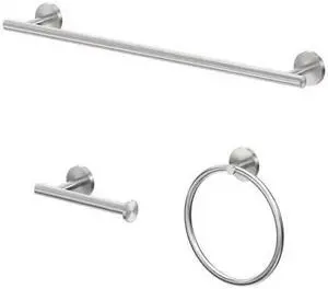 Gatco Level 3-Pieces Bath Hardware Set with 18 in. Towel Bar, Toilet Paper Holder and Towel Ring in Brushed Nickel # 5348 # 1007566772