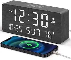 11.5 Digital Wall Clock with Date,Time,Week,Indoor Temperature,3 Alarms,5 Dimmer,2 USB Chargers,Battery Backup,Snooze,12/24H for Elderly,Parents,Impaired Vision,Dementia,Memory Loss,Office,Bedroom- Model #: Lan519330742465172
