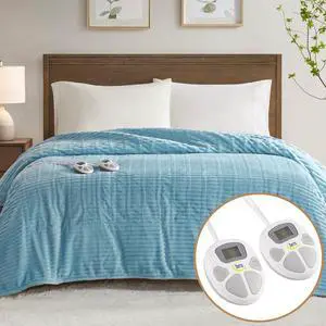 Serta Electric Blanket, Soft, Ribbed, Plush Heating Blanket King for Office, Couch, 1-12 hr Auto Shut Off Timer, 10 Lv Heating, ETL Certified, King 100"x90" Sky Blue