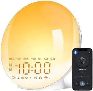 Wake Up Light Alarm Clock for Kids, LED Table Bedsides Lamp with Sunrise Simulation, Sleep Aid, Snooze, Bluetooth Speaker, Night Light for Bedroom Decor, Birthday, Christmas Gift