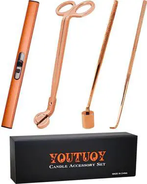 4 in1 Candle Accessory Set with Rechargeable Candle Lighter, Candle Wick Trimmer, Candle Wick Snuffer, Candle Wick Dipper, Candle Care Kit (Rose Gold)