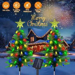 2Pack Lighted Artificial Christmas Tree with Solar String Lights Yard Decoration