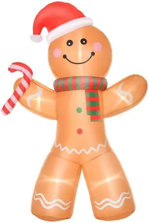 6ft Christmas Inflatable Gingerbread Man, Outdoor Blow-Up Yard Decoration with LED Lights Display