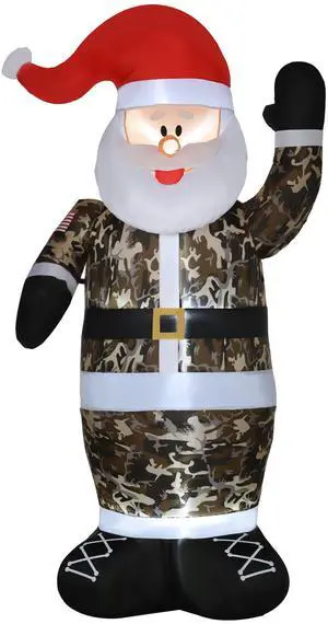 8' Christmas Inflatables Outdoor Decorations Santa Claus Wearing Camouflage, Blow-Up Yard Christmas Decor with LED Lights Display