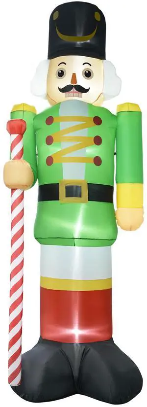 11.8' Christmas Inflatables Green Walnut Soldier with White LED Lights, Blow-Up Outdoor Christmas Decorations for Lawn Garden Party
