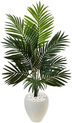 Nearly Natural 4.5' Kentia Palm Tree in White Oval Planter