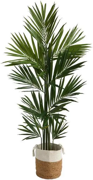 Nearly Natural 7' Kentia Palm in Handmade Natural Jute and Cotton Planter