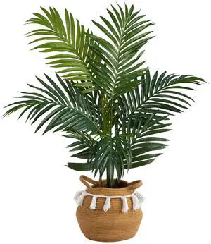 Nearly Natural 4' Kentia Palm Tree in Natural Cotton Planter with Tassels